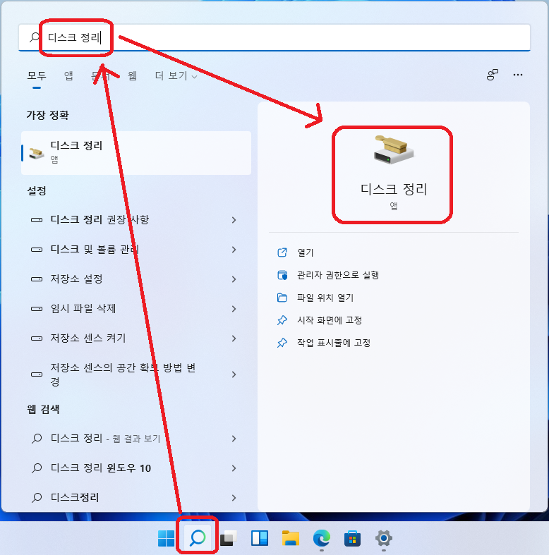 시작버튼 옆 돋보기 버튼을 클릭하고 "디스크 정리"를 입력하자.