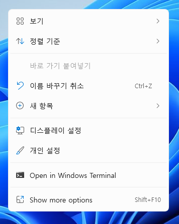 기존 방식의 콘텍스트 메뉴도 사용할 수 있는데, 하단의 "Show more options"를 클릭하면 된다.