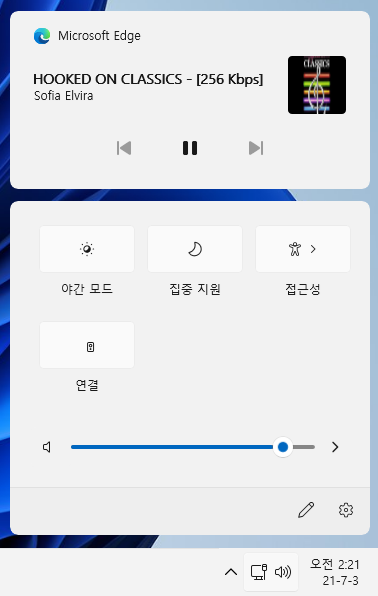 작업 표시줄 우측 하단의 네트워크, 사운드 버튼을 클릭하면 뜨는 창도 많이 바뀌었다.