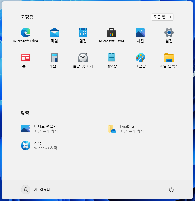 작업 표시줄이 가운데로 정렬되는 것도 똑같고, 새로운 시작 메뉴 역시 마찬가지다.