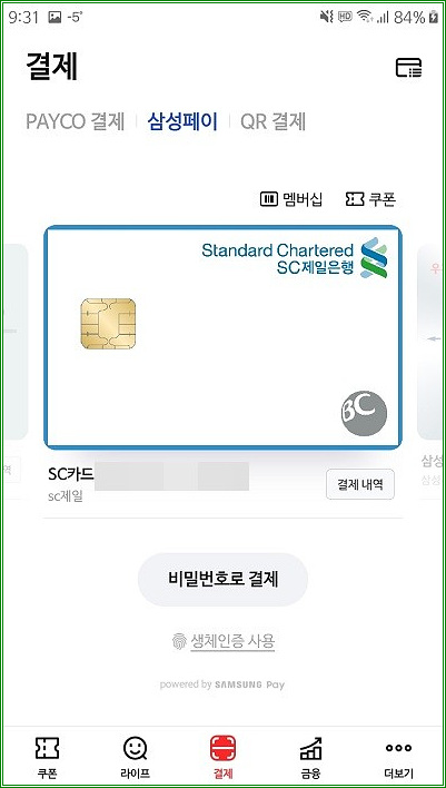 다만 삼성페이 앱이 설치되어 있어야 페이코 삼성페이를 사용할 수 있고, 개통되어 있는 유심칩도 장착되어 있어야 한다.