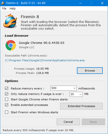 예전에 모 크롬 메모리 최적화 프로그램을 사용했을 때에는 블루스크린이 이따금씩 떴는데, Firemin은 이틀동안 사용하면서 딱히 문제가 발생하지는 않았다.