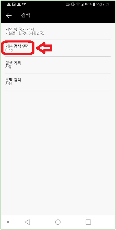 MS가 만든 브라우저라서 기본 검색엔진이 Bing으로 설정되어 있지만, 구글 등으로 바꿀 수 있다.