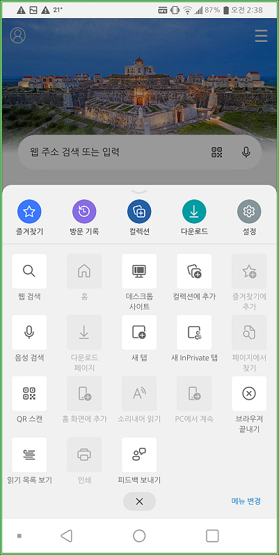 모바일 파이어폭스에 이어서 아주 오랜만에 엣지 브라우저를 설치해서 잠깐 사용했다.