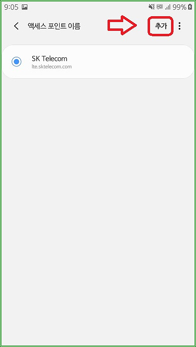 "APN 추가" 버튼을 터치하자.