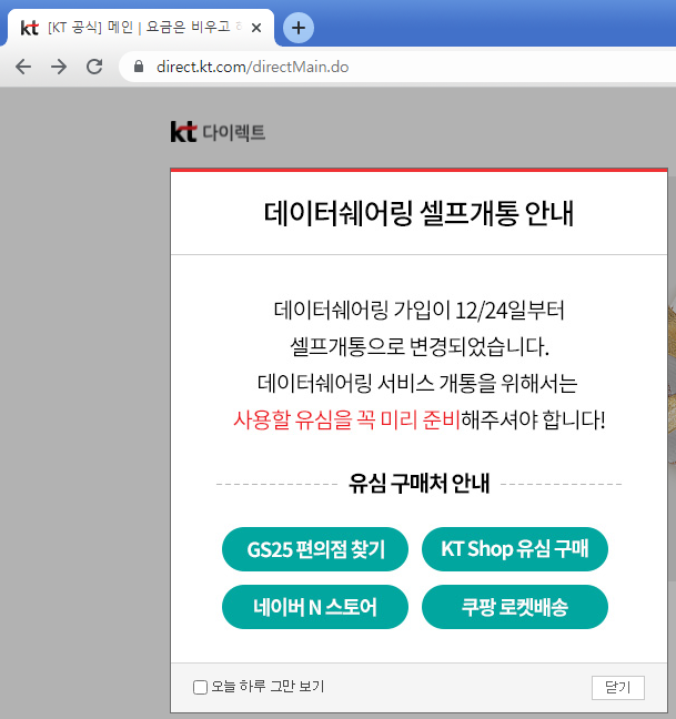 원래는 대리점이나 지점에서만 신청해야 했지만, 이제는 GS25 편의점, KT Shop 등지에서 유심칩을 직접 구입해서 등록할 수 있다.