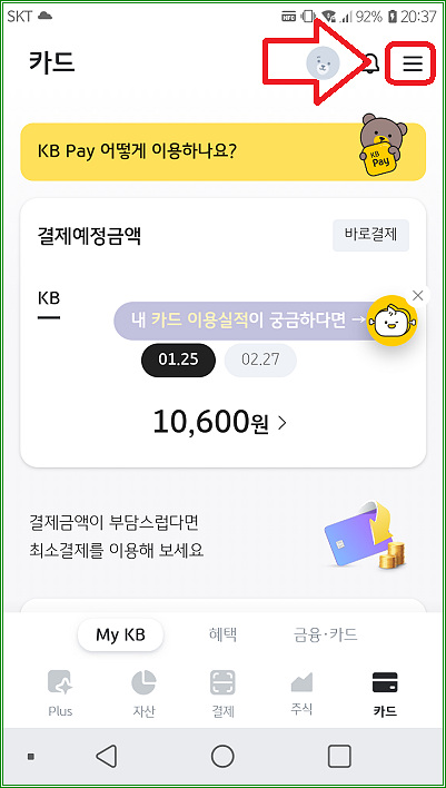 어쩔 수 없이 KB Pay 앱을 설치해서 확인했다.