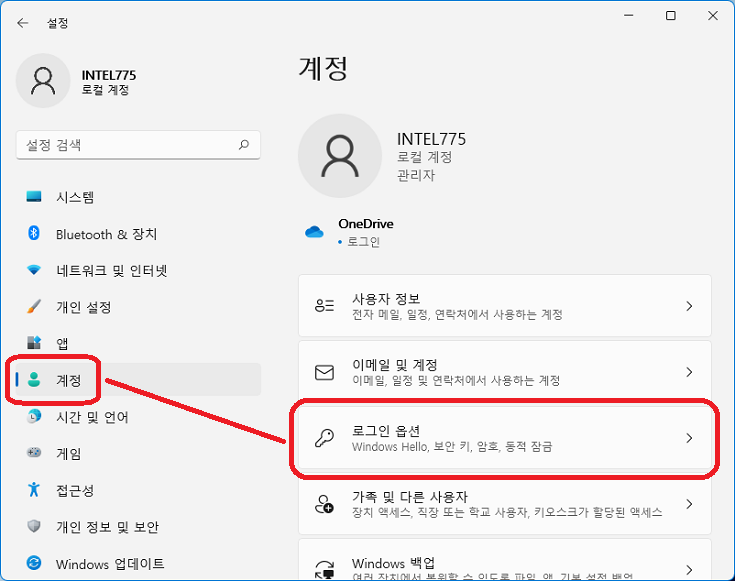 이어서 "계정"-"로그인 옵션"으로 들어가자.
