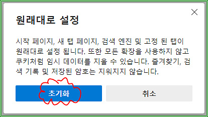 익스플로러에도 있고 크롬에도 있고 아래와 같이 엣지 브라우저도 초기화 기능이 있다.