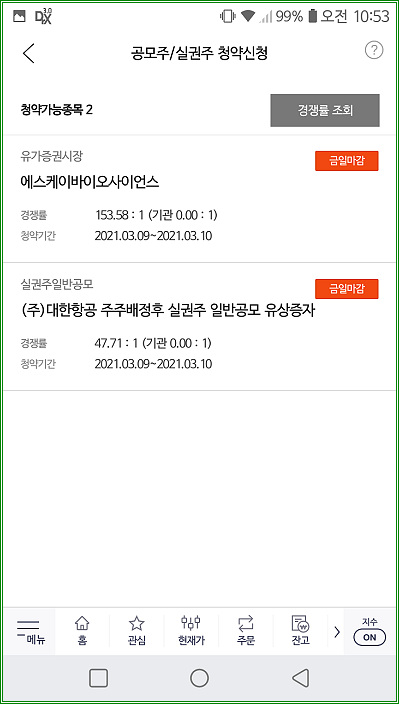 그래서 한국투자증권을 통해서 공모주 청약을 시도했다.