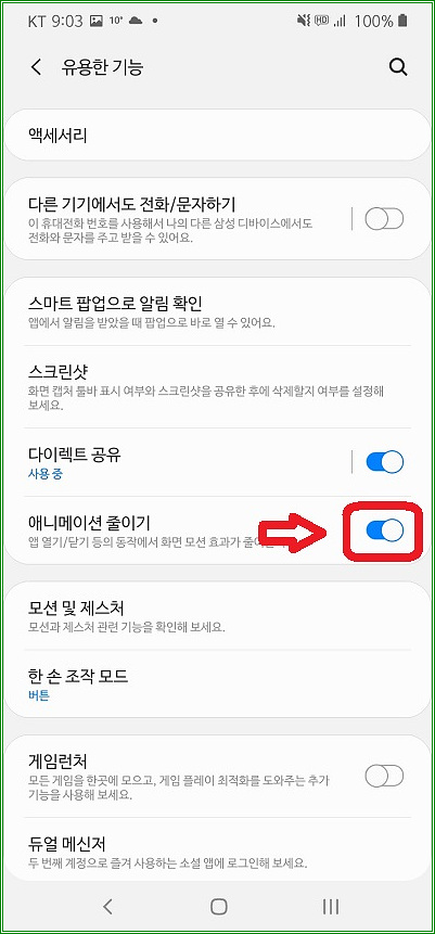 참고로 애니메이션 줄이기는 삼성 ONE UI 런처를 사용하는 경우에만 해당된다.