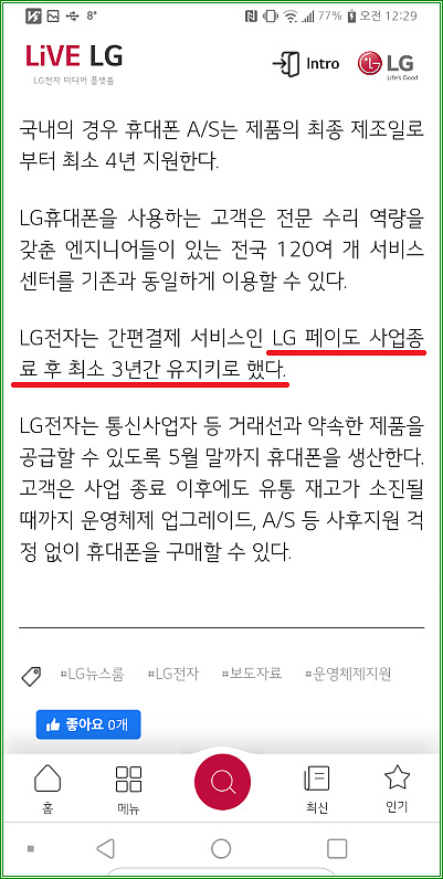 LG전자 오피셜에 따르면 LG페이는 최소 3년은 유지할 계획이다.