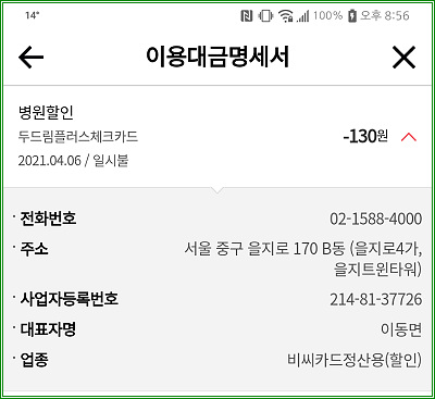 혹시나 해서 청구할인이 되지 않을까봐 병원이나 약국에서는 항상 실물 체크카드로 결제했다.