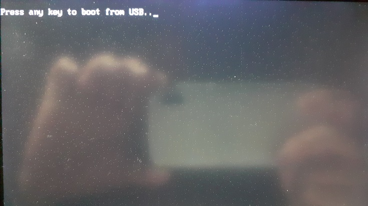 2. 재부팅되면 USB 메모리로 부팅된다. 아무 키나 누르자.