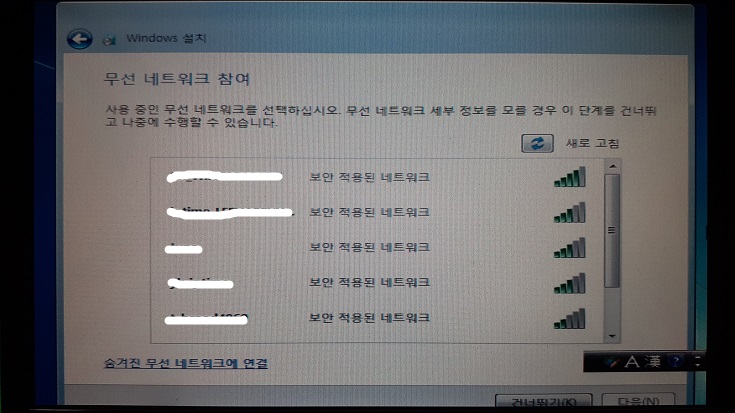 이렇게 와이파이 목록이 뜰 경우 추후 무선랜카드 드라이버를 따로 설치할 필요가 없다.