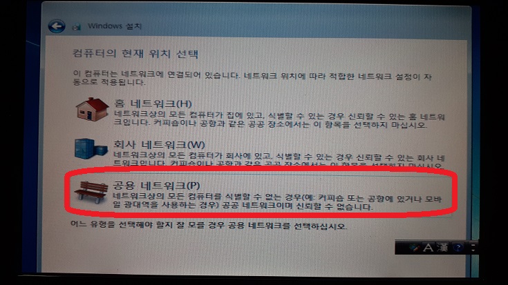 "공용 네트워크"를 선택하는 것이 좋다.