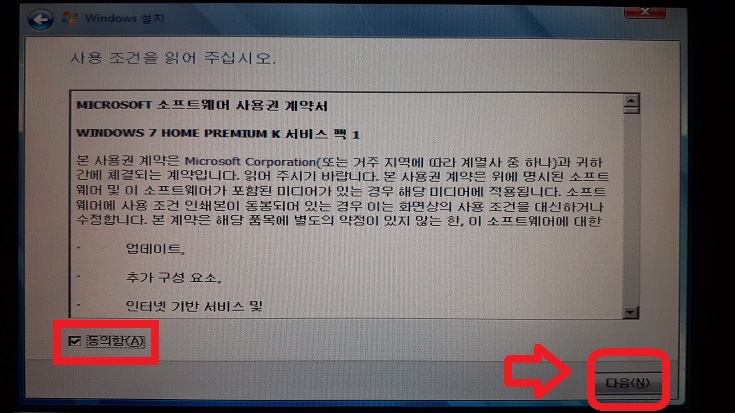 5. 계약서 화면이 뜬다. "동의함"을 선택하고 "다음"을 클릭하자.