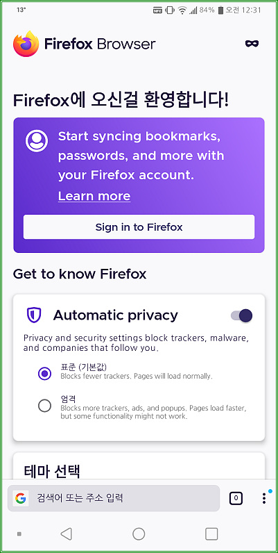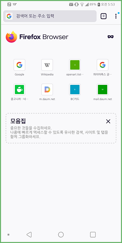 시중에는 이런저런 모바일 브라우저들이 많지만, 대부분 크롬과 같은 블링크 엔진 기반이라서 패스하고 독자적인 엔진 기반인 파이어폭스를 아주 오랜만에 사용해 봤다.