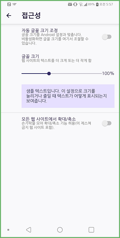 (LG 스마트폰 안드로이드 9 파이 환경에서 위와 같이 표시되며, 갤럭시 시리즈는 다를 수 있다)