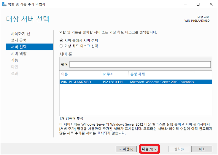 개인 사용자라면 물론 서버가 하나만 뜰 것이고, "다음"을 클릭하자.