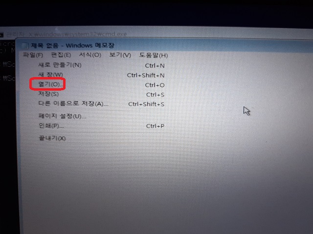 이 상태에서 Shift키와 F10키를 동시에 눌러서 명령 프롬프트를 띄우자.