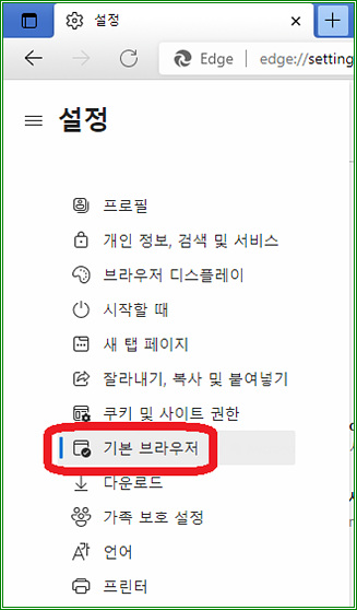 이어서 좌측 설정메뉴에서 "기본 브라우저"를 클릭하자.
