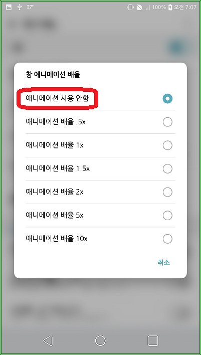 LG 스마트폰 애니메이션 끄는 방법