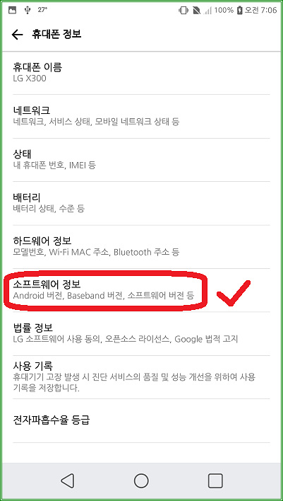 "소프트웨어 정보"를 터치하자.