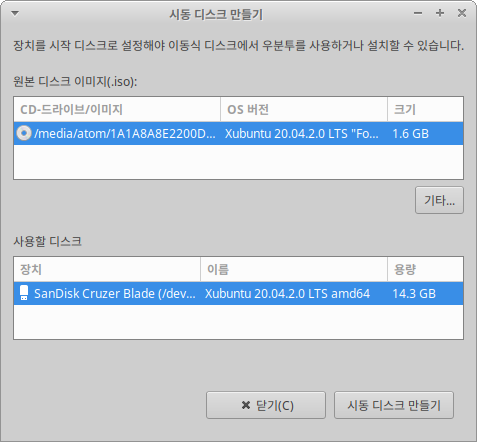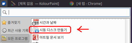 그런데 우분투 변형 배포판 중에서는 시동 디스크 만들기가 없는 경우가 있다.