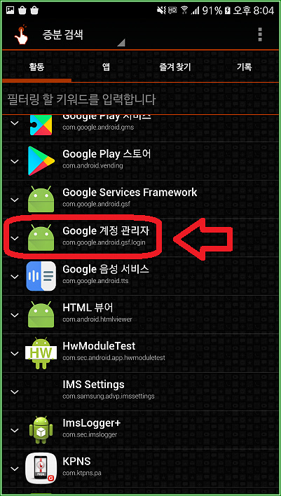 위 캡처화면에는 Google 계정 관리자가 하나만 떠 있지만, 롤리팝에서는 2개가 뜰 것이다.