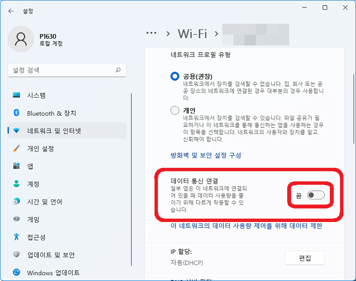 데이터 통신 연결 절약 설정
