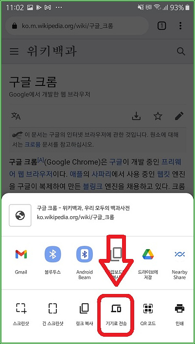 하단에 이런저런 메뉴들이 뜨는데, "기기로 전송"을 터치하자.