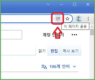 컴퓨터에서 크롬을 실행하고 위와 같이 "이 페이지 공유" 버튼을 클릭하자.