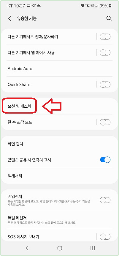 (갤럭시진2에서는 "두 번 눌러 화면 켜기"가 보이지 않는다)