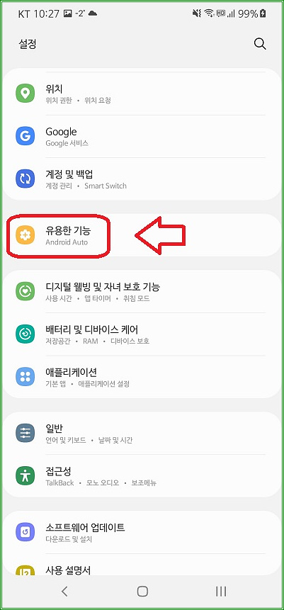 노크온 기능을 활성화하거나 비활성화하려면 우선 설정메뉴로 들어가자.