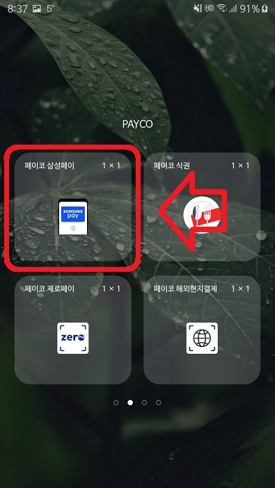 하지만 아래와 같이 홈 화면에 페이코 삼성페이 위젯을 만들면 간편하게 결제할 수 있다.