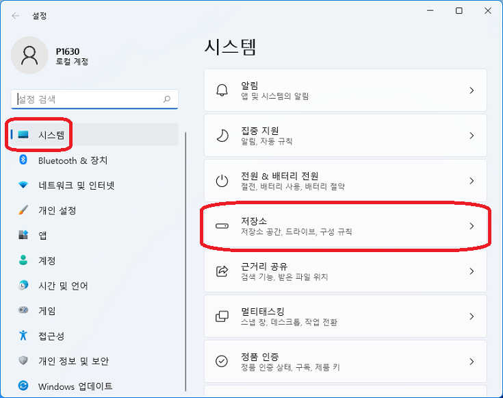 "시스템" 메뉴로 들어가서 "저장소"를 클릭하자.