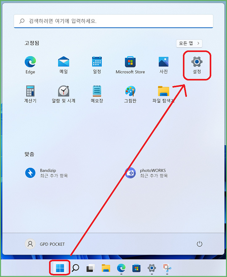 1. 시작 버튼을 클릭하고 "설정"을 클릭하자.