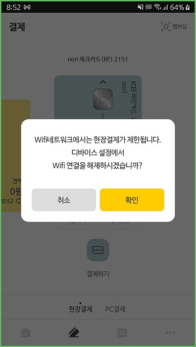 KB Pay로 현장결제하려면 데이터를 켜야 한다.