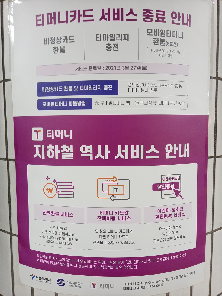 예전에는 서울 지하철역에서 T마일리지로 교통카드를 충전할 수 있었지만, 이제는 불가능하다.