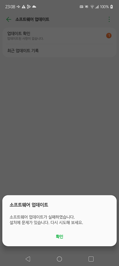 "소프트웨어 업데이트가 실패하였습니다. 설치에 문제가 있습니다. 다시 시도해 보세요"라는 경고문이 뜨면서 진행이 되지 않는다.