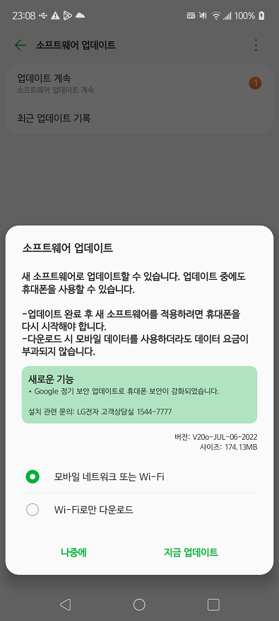 그런데 "지금 업데이트"를 터치했는데