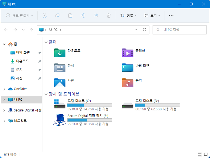 21H2와 비교해 봤을 때 외관상 특별히 차이가 나지는 않는데, 탐색기는 확실히 깔끔해졌다.