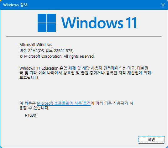 설치되어 있는 에디션은 윈도우11 EDU이다.