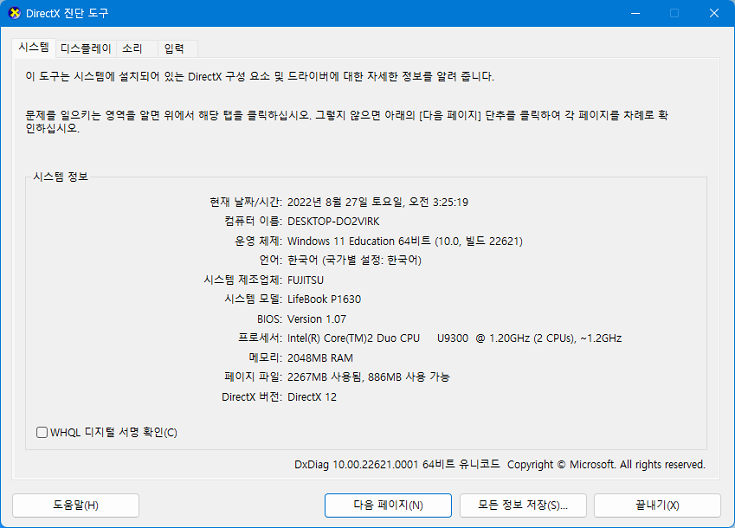 무려 코어2듀오 CPU가 탑재되어 있는 후지쯔 P1630에 설치했다.