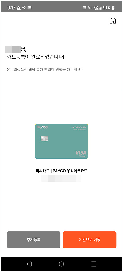카드등록 완료되었다.