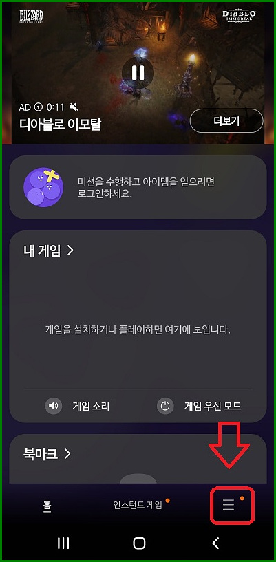 우측 하단의 작대기 세개 버튼을 터치하자.