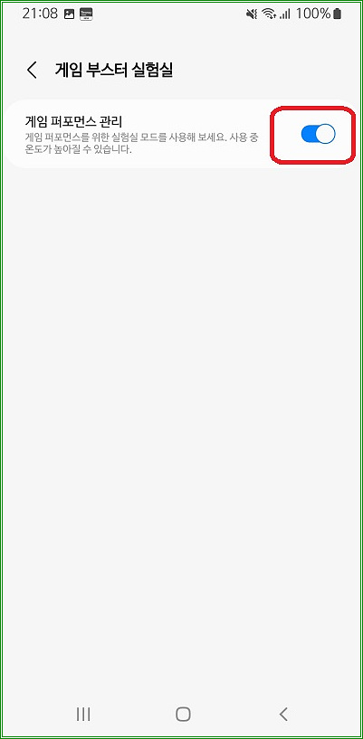 "게임 퍼포먼스 관리" 스위치를 켜자.