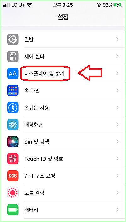"설정"-"디스플레이 및 밝기"를 터치하자.