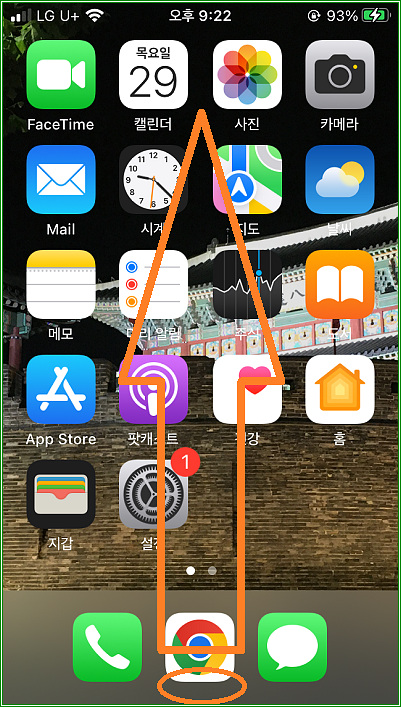디스플레이 맨 아래에서 위로 슬라이드하자.